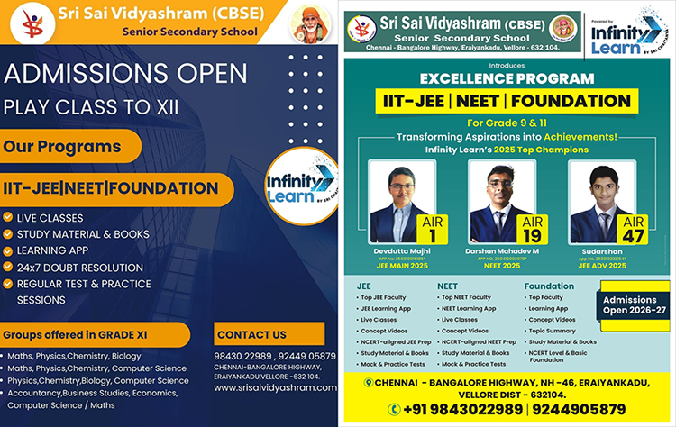 Sri Sai Vidyashram Believes in Child centred& child participating educational system. We aim to prepare the students to enter into any walk of life and make them realize victory by addressing the uniqueness of individual child.